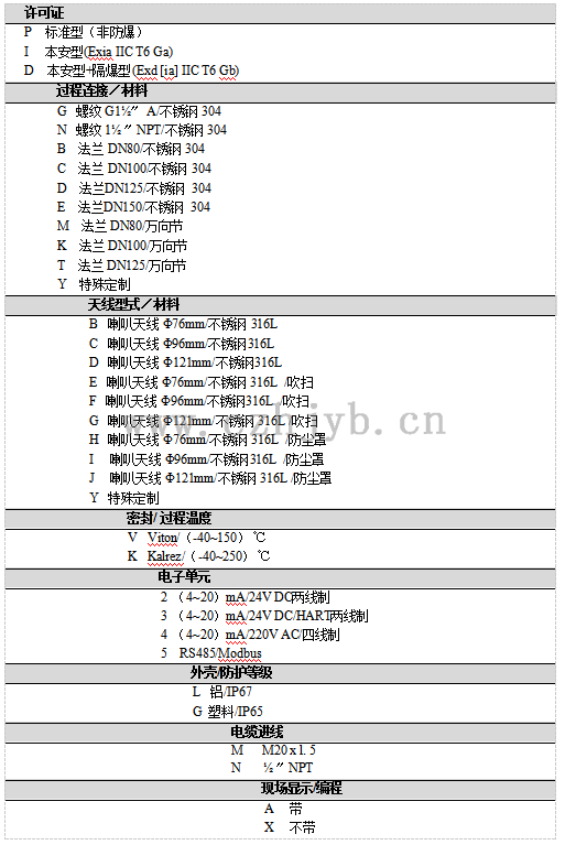 過程溫度(天線部分的溫度)                        (-40~250)℃